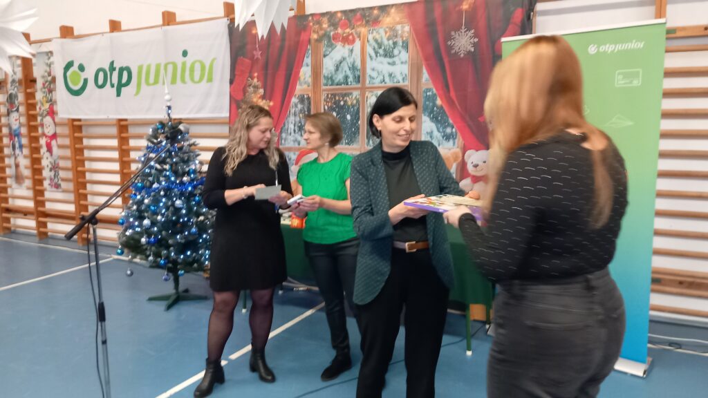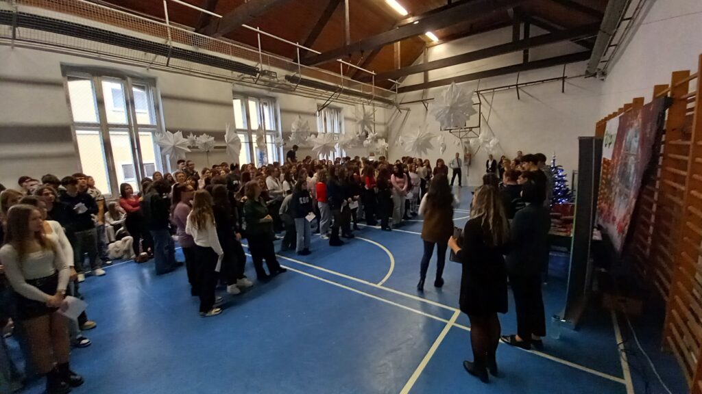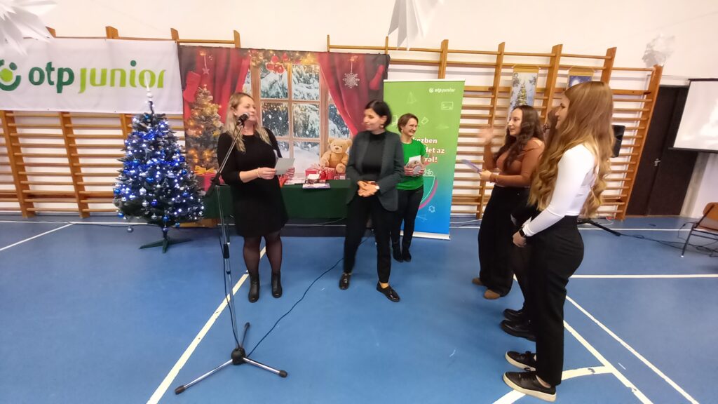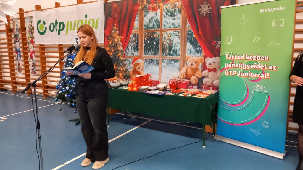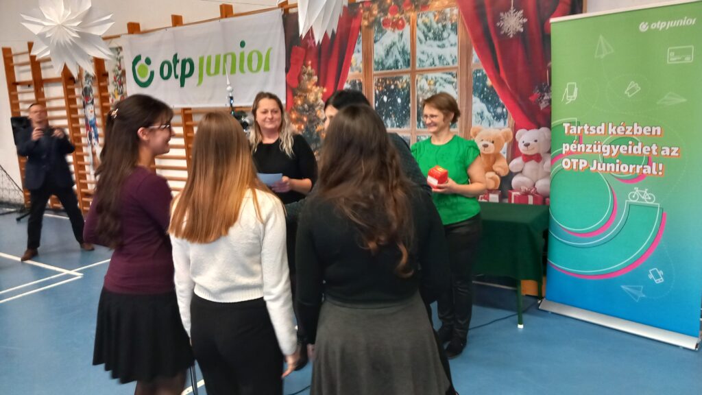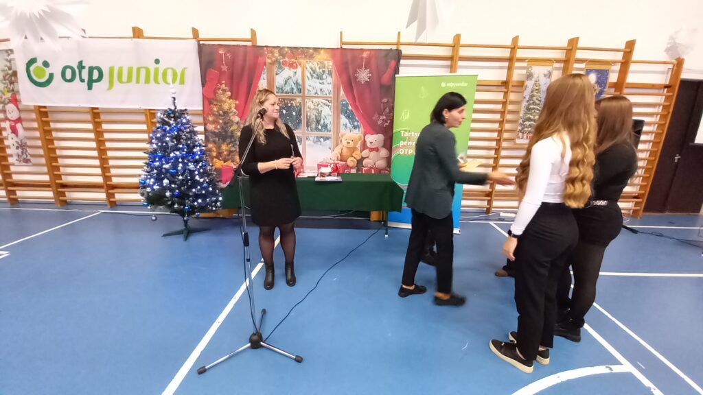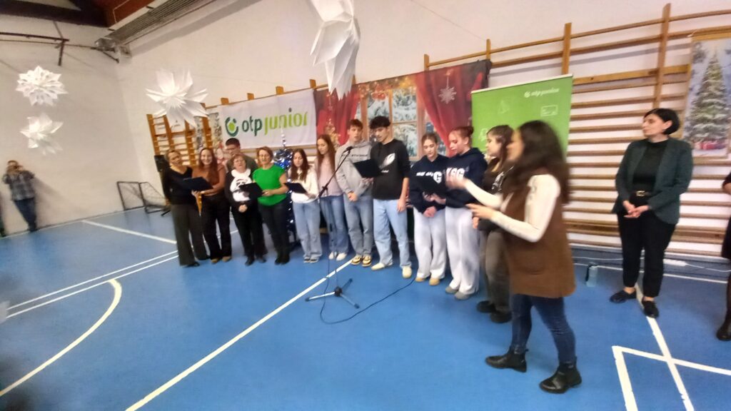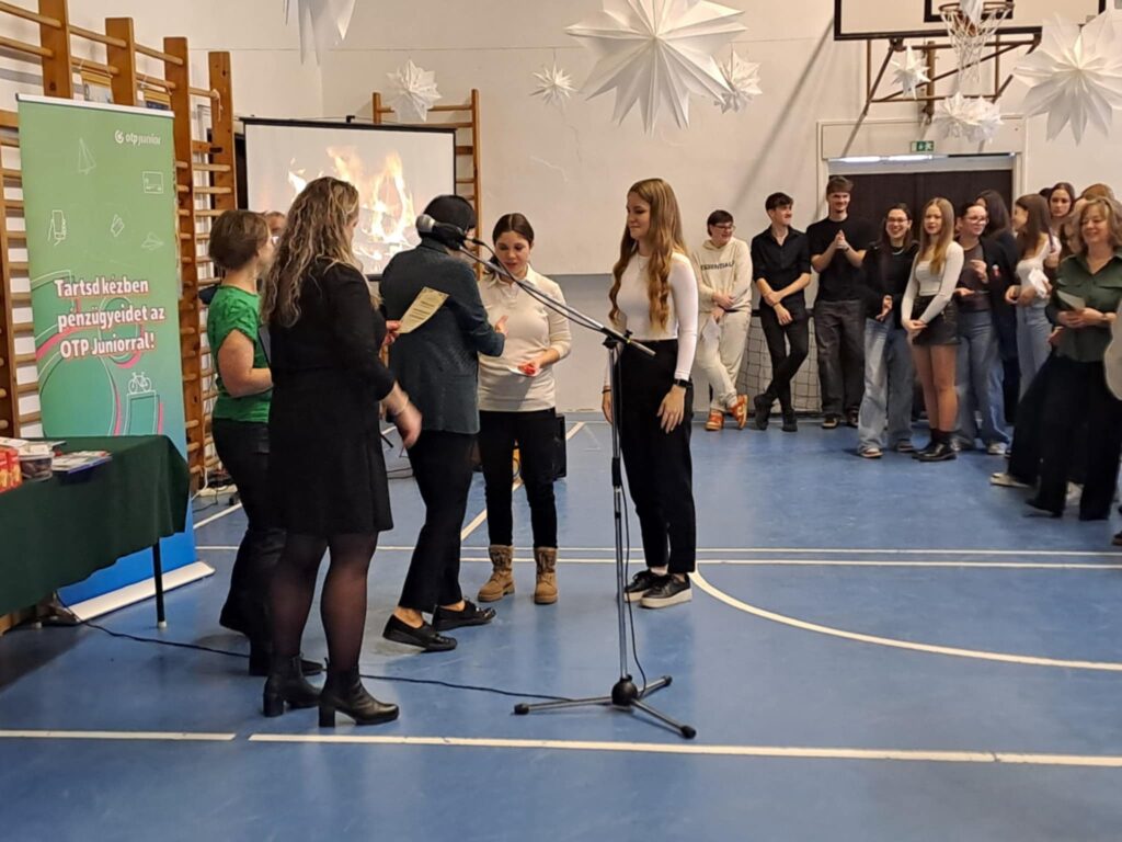 A téli szünet előtti utolsó tanítási nap zárásaként iskolai karácsonyi ünnepséget tartottunk. A diákok és tanárok közös zenés műsorát követően a tanév első félévében lezajlott anyanyelvi hét helyesírási – nyelvhelyességi – könyvtár-használati versenyeinek, illetve az idegennyelvi hét angol és német versenyeinek nyerteseit is díjaztuk. A rendezvényt az OTP szponzorálta, amit ezúton is köszönünk.